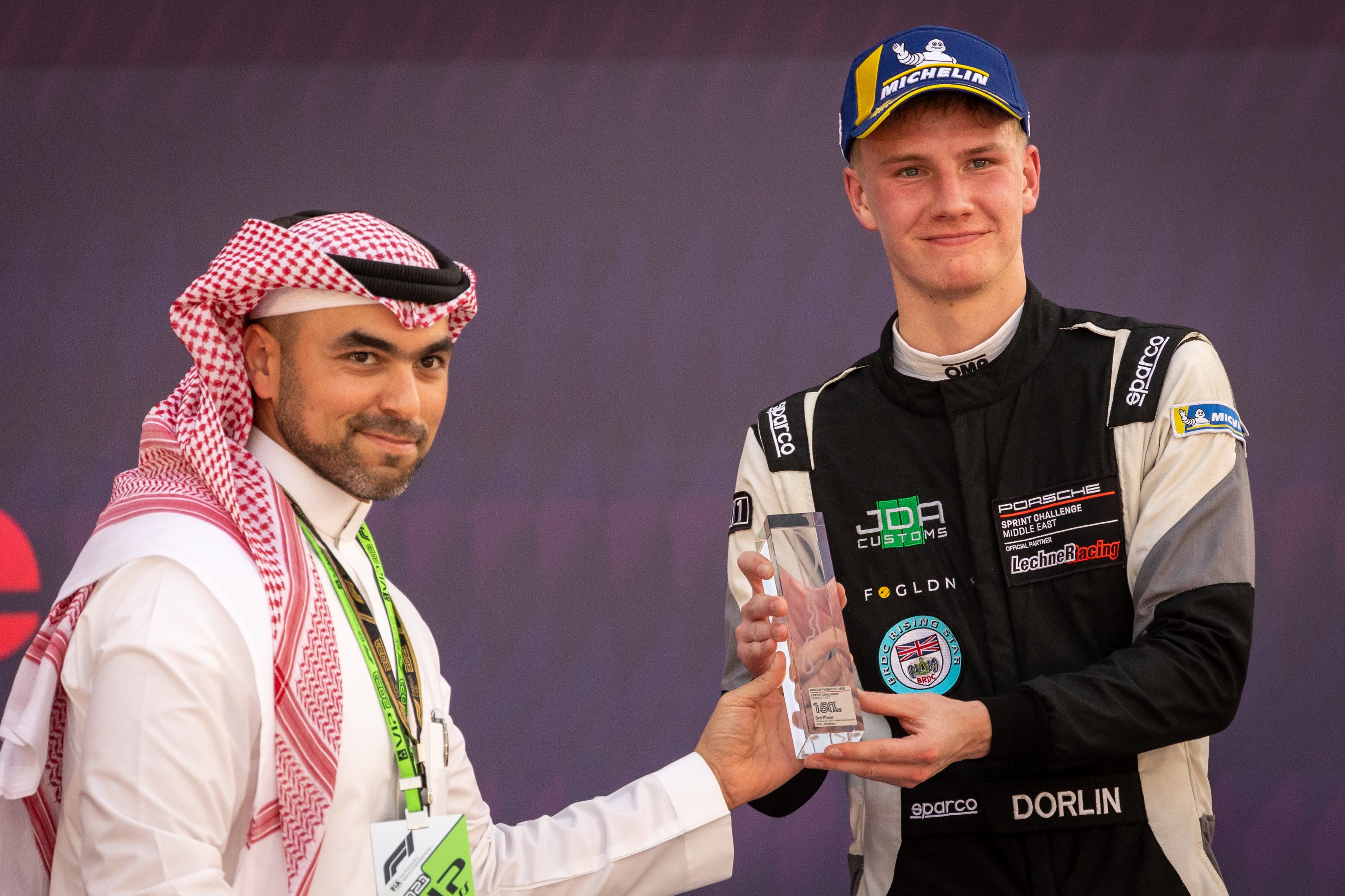 Podium for dorlin at jeddah corniche circuit in porsche gt3 cup